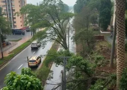 Tempestade causa bloqueios e transtornos no trânsito de Porto Alegre.